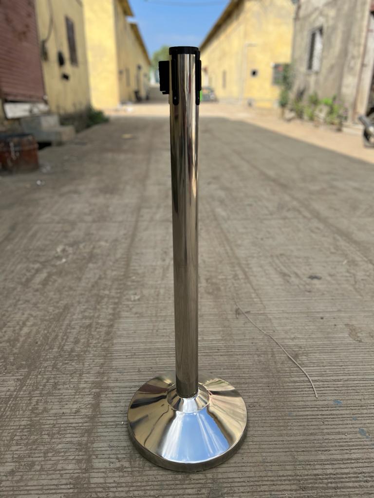 Premium Grade Q- manager Stainless steel 202 Grade, 1000 mm Height, 350 mm base, Belt -2.75 Mtr Length, Pipe - 0.80 mm thickness, Pipe Dia - 63.5 mm OD, Weight - 9 To 10 Kg, approx. Price is for Single pole